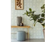 Šedo-zelená vliesová tapeta na zeď, skládaný vzor origami.