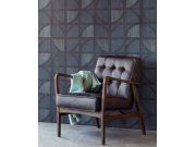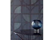 Vliesová tapeta. Žíhaný podklad, výrazný geometrický vzor, odstíny tmavě modré, místy jemné metalické odlesky.
