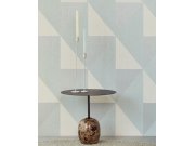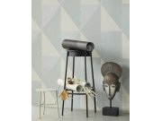 Vliesová matná béžová tapeta s šedo-modrým geometrickým vzorem s jemným pololeskem.