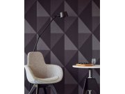 Vliesová tapeta s geometrickým vzorem. Podklad tmavě šedá, vzor černá, metalické stříbrné detaily.