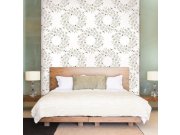 Věnce z jmelí v šedo-béžové a bílé barvě na šedé vliesové tapetě.