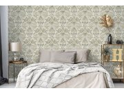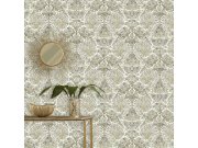 Luxusní vliesová tapeta s rostlinnými ornamenty na jemném štukovém podkladu v béžové barvě.