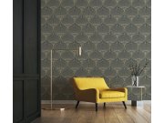 Vliesová tapeta se zlatými geometrickými vzory na strukturovaném černém podkladu vnese do interiéru příjemnou atmosféru luxusu.