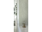 Vliesová tapeta na zeď s bílými obrysy rostlin na zeleném strukturovaném podkladu.