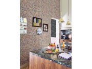Vliesová tapeta s vinylovým povrchem - abstraktní květinový vzor v odstínech lila, starorůžové, okrové a fialové. Hrubší textilní struktura. Foto interiéru je pouze ilustrační - odlišné barvy.