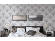 Geometrická vliesová tapeta na zeď, odstíny šedé, drobné metalické třpytky.