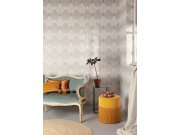 Luxusní vliesová tapeta s vinylovým povrchem, geometrický vzor ve stylu Art deco, odstíny pololesklé hnědo-béžové, stínovaní vytváří prostorový efekt. Co vás zaujme: kvalita zpracování, vysoká odolnost. Design: luxusní, Art deco. Úroveň tapetování: pro za