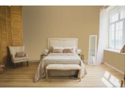 Béžová vliesová tapeta s vinylovým povrchem, vzor okrových květin, hrubší látková textura. Foto interiéru je pouze ilustrační - odlišné barvy.