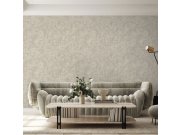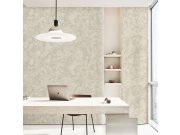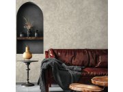 Luxusní metalická vliesová tapeta v béžovo-šedé barvě s plastickou krémovou texturou na podkladě imitující štukovou omítku.