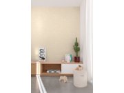 Béžová dětská vliesová tapeta, motivy kytiček a zajíčků. Tapeta má látkovou texturu, je vhodná do dětského pokojíčku pro nejmenší děti.