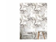 Světle šedá vliesová tapeta s motivem letících čápů na hladkém podkladu vnese do interiéru klidnou atmosféru.