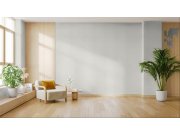 Jemně plastická, matná, bílo-šedá vliesová tapeta s vinylovým povrchem - imitace štukové omítky. Foto interiéru je pouze ilustrační - odlišné barvy.