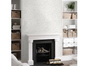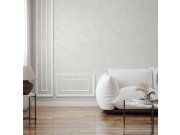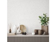 Luxusní vliesová tapeta na zeď s vinylovým povrchem a geometrickým vzorem ve stříbrné a bílé barvě. Foto interiéru je pouze ilustrační - odlišné barvy.