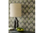 Jemně plastická vliesová tapeta na zeď, vzhled tkaniny Ikat, odstíny černé, šedé, zelené. Co vás zaujme: vyrobeno s ohledem na udržitelnost a ekologii. Design: rustikální, etno. Úroveň tapetování: začátečník. Země původu: Holandsko.