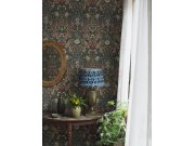 Vliesová tapeta na zeď, černý podklad, bohatý květinový vzor v odstínech zelené, modré, vínové, okrové a béžové. Co vás zaujme: vyrobeno s ohledem na udržitelnost a ekologii. Design: přírodní. Úroveň tapetování: pro začátečníky. Země původu: Švédsko.