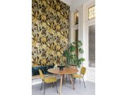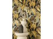 Vliesová tapeta na zeď, černý podklad, vzor listů v odstínech hnědé, okrové a šedo-zelené metalické. Co vás zaujme: vyrobeno s ohledem na udržitelnost a ekologii. Design: přírodní. Úroveň tapetování: pro začátečníky. Země původu: Belgie.