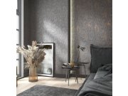 Luxusní vliesová tapeta s vinylovým povrchem, dekor beton, štuk, odstíny černé, hnědé, zlaté a bronzové. Foto interiéru je pouze ilustrační.