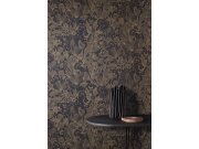 Vliesová tapeta na zeď, černo-zlatá, listy, ROM103, Romance, Masureel