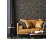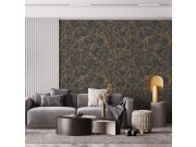 Luxusní vliesová tapeta s vinylovým povrchem, motiv listů, odstíny šedé, hnědé, černé a stříbrné. Foto interiéru je pouze ilustrační - odlišné barvy.