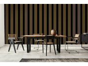 Vliesová tapeta s vinylovým povrchem, černo-zlaté pruhy. Pruhy v šíři 12,5 a 2,80 cm. Co vás zaujme: odolnost a omyvatelnost. Design: nadčasový. Úroveň tapetování: pro začátečníky. Země původu: Česká republika.