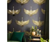 Vliesová tapeta na zeď, černo-zlatá, ptáci, 34532, Kumano, Marburg