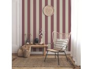 Luxusní vliesová tapeta s vinylovým povrchem s výraznou hrubou strukturou v béžové barvě s vínovými pruhy a metalickými odlesky.