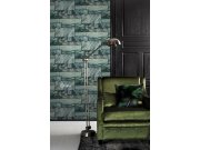 Zelenočerná vliesová tapeta na zeď, imitace kamenného obkladu.