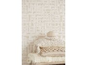 Geometrický vzorek v krémové a béžové barvě na vliesové tapetě se stříbrnými detaily. Vliesové tapety Siroc cítí tlukoucí africké srdce, které se rozeznívá v této rozmanité kolekci luxusních tapet. Rytmus kontinentu je zachycen ve vibrujících vzorech těch