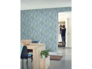 Vliesová geometrická tapeta tyrkysová, s látkovou texturou.