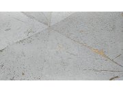 Vliesová tapeta s látkovou texturou. Metalický, částečně setřený, geometrický vzor na šedo-béžovém podkladu.
