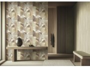 Luxusní plastická vliesová tapeta s vinylovým povrchem, geometrický vzor v odstínech hnědé, béžové, krémové, modré a šedo-modré; hrubší textura.