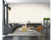 Krémová vliesová tapeta na zeď, strukturovaný geometrický vzor. Foto interiéru je pouze ilustrační.
