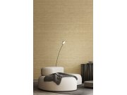 Luxusní vliesová tapeta s vinylovým povrchem, hnědo-zlatý pololesk, plastická látková texura. Foto interiéru je pouze ilustrační - odlišné barvy.