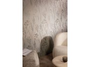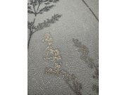 Vliesová tapeta s vinylovým povrchem, vzor lučních květin a trav v odstínech pololesklé hnědé a hnědo-šedo-zlaté - jemná vláknitá textura. Co u vás zaujme: detailní zpracování, šíře role. Design: přírodní. Úroveň tapetování: pro začátečníky. Země původu: