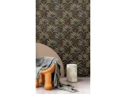 Luxusní vliesová tapeta s vinylovým povrchem, vzor evokuje textilii, listy, tmavě hnědý podklad, listy v kombinaci odstínů šedé a zlaté. Co u vás zaujme: kvalita, odolnost a omyvatelnost. Design: přírodní, rostlinný. Úroveň tapetování: pro začátečníky. Ze