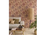 Vliesová tapeta s vinylovým povrchem, látková textura, terakotový podklad, květinový ornamentální vzor v odstínech červené, fialové a zelené. Co vás zaujme: kvalita zpracování, odolnost. Design: přírodní. Úroveň tapetování: pro začátečníky. Země původu: H