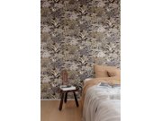 Vliesová tapeta s vinylovým povrchem a bohatým ornamentálním vzorem v bronzovo-hnědých odstínech se zlatým odleskem. Podklad je vzor šedo-černého štuku.