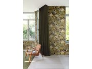Vliesová tapeta na zeď, motiv přírody a zvířat, odstíny hnědé a zeleno-béžové, místy zlatý kovový pololesk. Co vás zaujme: vyrobeno s ohledem na udržitelnost a ekologii. Design: přírodní. Úroveň tapetování: pro začátečníky. Země původu: Belgie.