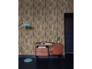 Vliesová tapeta s vinylovým povrchem - modro/tyrkysový podklad s jemným pololeskem, metalické textury v odstínech tyrkysové, cihlové a šedé. Barvy a odlesky se mění podle dopadu světla na tapetu. Co u vás zaujme: luxusní a stylový vzhled. Design: luxusní
