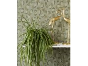 Vliesová tapeta imitace leopardí kůže. Jemně plastická textura v odstínech khaki, místy metalické odlesky.