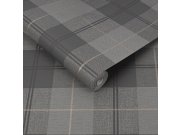 Šedá vliesová tapeta s vinylovým povrchem, šedé čtverečky se zlatými puntíky.