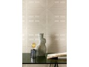 Vliesová obrazová tapeta na zeď, béžová, šedá, vlnky ve čtvercích, DGTRA6012-300, Traces, Masureel