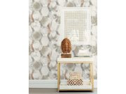 Šedo-béžovo-zlatá geometrická vliesová tapeta na zeď, NW3504, Modern Metals, York