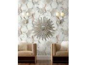 Luxusní vliesová tapeta s vinylovým povrchem, béžové geometrické vzory, látková textura, šedo-hnědý pololesk.