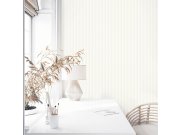 Luxusní vliesová tapeta s vinylovým povrchem, odstíny pololesklé krémové, stínované proužky s prostorovým efektem a efektem prošívání. Pruhy cca 3 cm, 1,6 cm a 1 cm. Co vás zaujme: kvalita zpracování, vysoká odolnost. Design: luxusní, glam. Úroveň tapetov