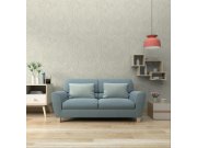 Světle modrá vliesová tapeta na zeď, jemně plastické květy dřínu v odstínech bílé, béžřové, modré a zelené.