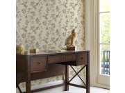Ornamentální květinová tapeta s přírodními motivy béžové a hnědé barvy.