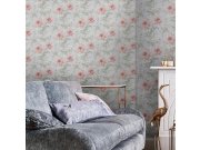 Vliesová tapeta s květinovým motivem v růžové a šedé barvě na bílém hladkém podkladu vnese do interiéru příjemnou atmosféru.