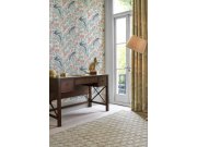 Vliesová tapeta s barevnými květy a ptáky na bílém podkladu vnese do interiéru příjemnou atmosféru.