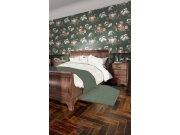 Vliesová tapeta s barevnými květy na tmavě zeleném hladkém podkladu vnese do interiéru příjemnou atmosféru.